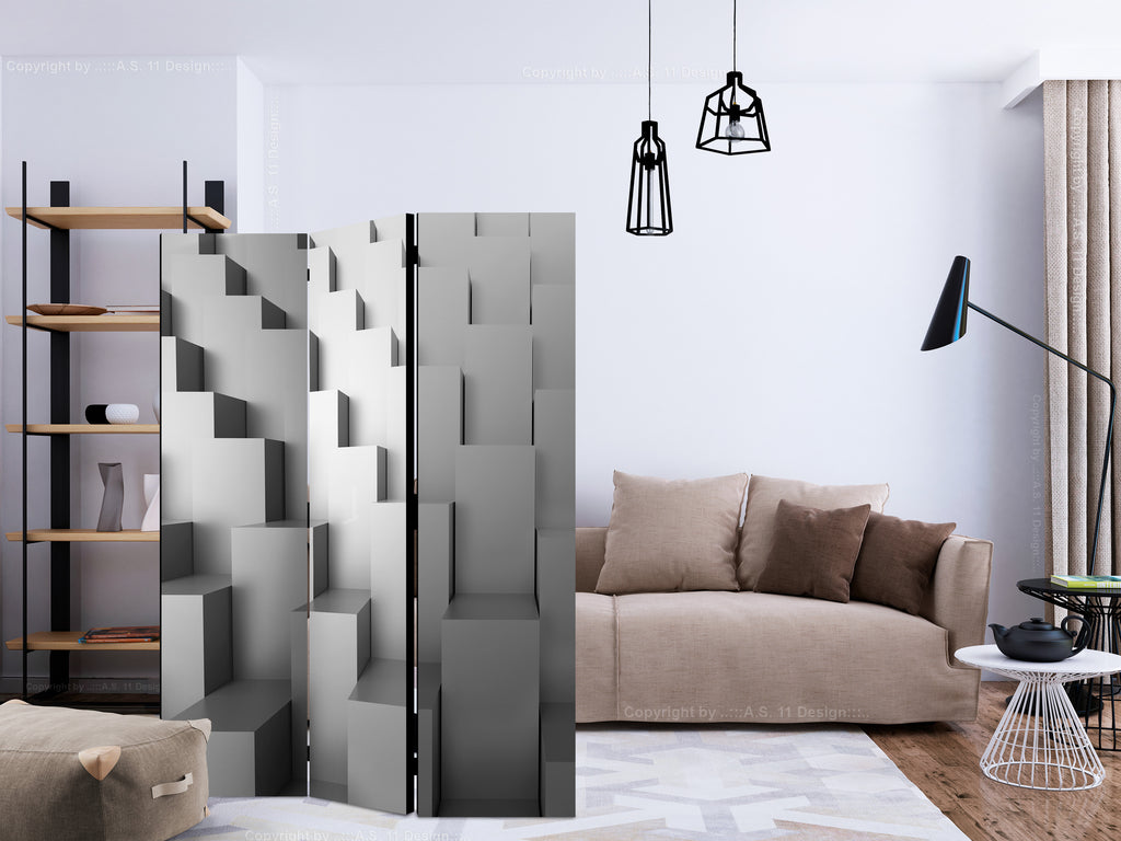 Het decoratieve vouwscherm "Vouwscherm - Temple of Abstraction [Room Dividers]" past uitzonderlijk mooi in een modern interieur. Het houten driedelige en tweezijdig bedrukte vouwscherm geeft niet alleen een mooie opdeling van een ruimte maar geeft ook een fantastische flair aan uw interieur. De perfectie uitvoering en het originele motief in full HD uitvoering zorgen ervoor dat de kamervouwschermen iedere ruimte een originele charme verschaffen. Een prachtig kamervouwscherm is een zeer originele versiering en kan bijvoorbeeld prima worden toegepast in woningen of dienstruimten. (kapsalon, dokterskliniek, administratiekantoor etc)