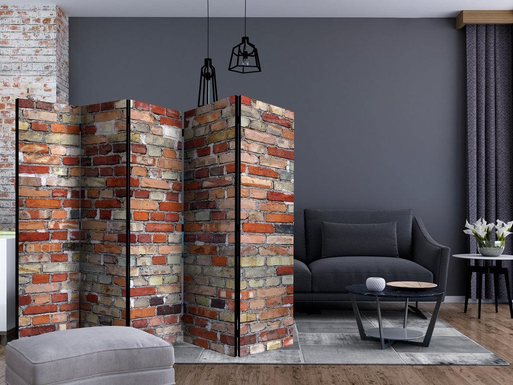 Het decoratieve vouwscherm "Vouwscherm - Urban Brick II [Room Dividers]" past uitzonderlijk mooi in een modern interieur. Het houten tweezijdig bedrukte vouwscherm geeft niet alleen een mooie opdeling van een ruimte maar geeft ook een fantastische flair aan uw interieur. De perfectie uitvoering en het originele motief in full HD uitvoering zorgen ervoor dat de kamervouwschermen iedere ruimte een originele charme verschaffen. Een prachtig kamervouwscherm is een zeer originele versiering en kan bijvoorbeeld prima worden toegepast in woningen of dienstruimten. (kapsalon, dokterskliniek, administratiekantoor etc)