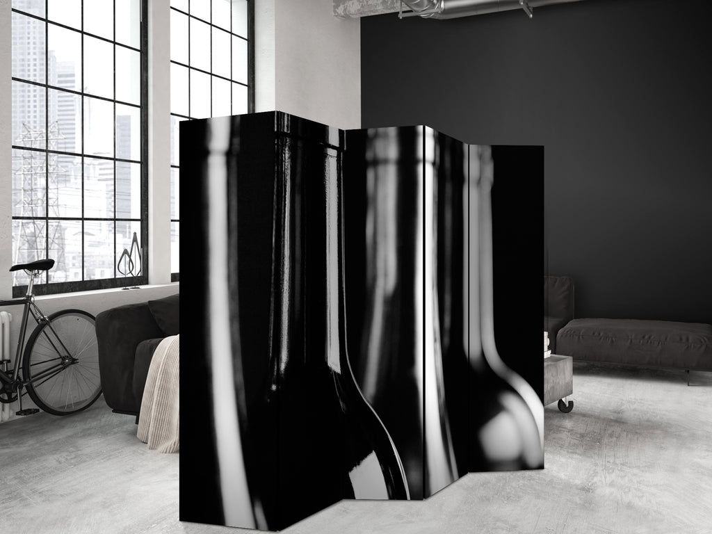 Het decoratieve vouwscherm "Vouwscherm - Wine Bottles II [Room Dividers]" past uitzonderlijk mooi in een modern interieur. Het houten tweezijdig bedrukte vouwscherm geeft niet alleen een mooie opdeling van een ruimte maar geeft ook een fantastische flair aan uw interieur. De perfectie uitvoering en het originele motief in full HD uitvoering zorgen ervoor dat de kamervouwschermen iedere ruimte een originele charme verschaffen. Een prachtig kamervouwscherm is een zeer originele versiering en kan bijvoorbeeld prima worden toegepast in woningen of dienstruimten. (kapsalon, dokterskliniek, administratiekantoor etc)