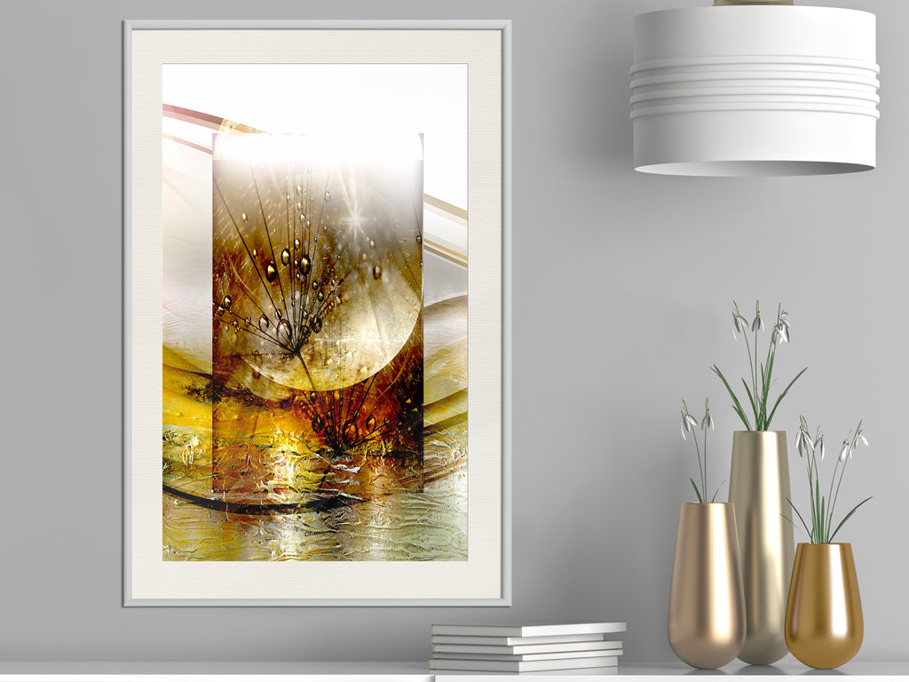 Een ecru passe-partout benadrukt de kleuren van de poster en zorgt voor extra contrast tussen de afbeelding, de lijst en de muur. Bovendien verschaffen ze de omlijsting een driedimensionaal karakter en vormen ze een extra beschermlaag. De poster is beveiligd met acrylglas en is aan de achterzijde van de lijst is een ophanghaakje gemonteerd.