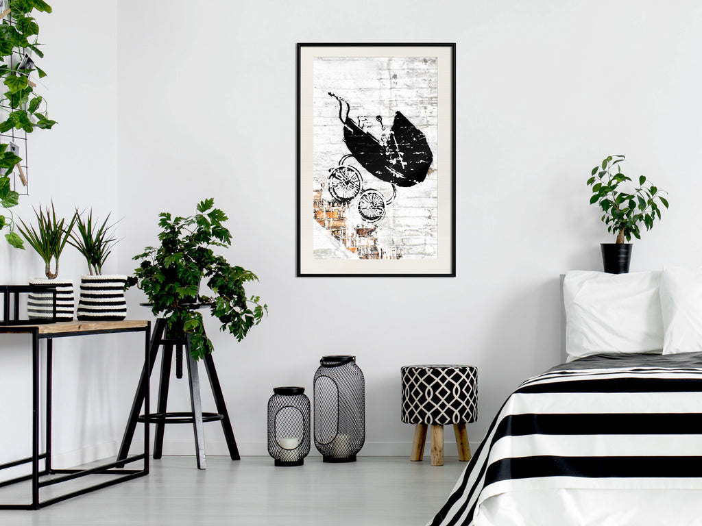 Poster - Banksy: Baby Stroller - zwart passepartout