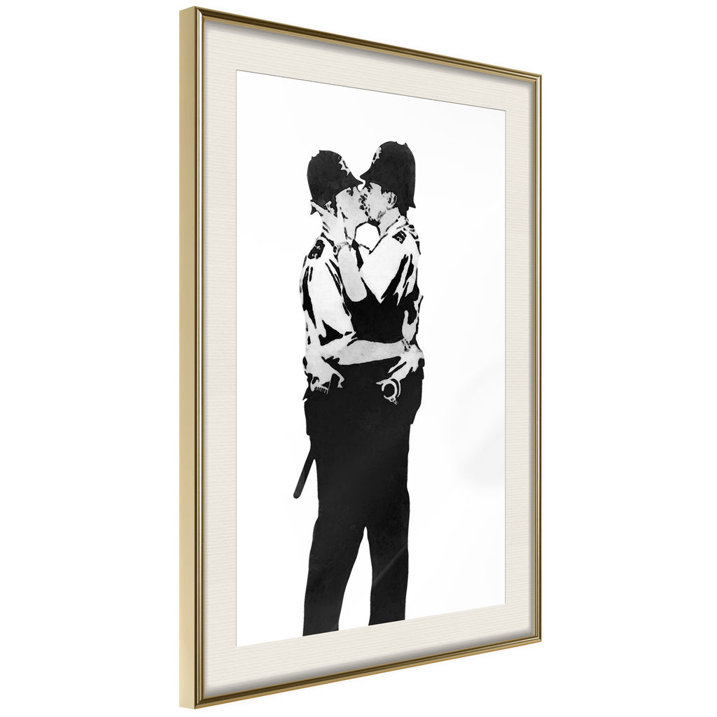 Poster - Banksy: Kissing Coppers I - goud passepartout