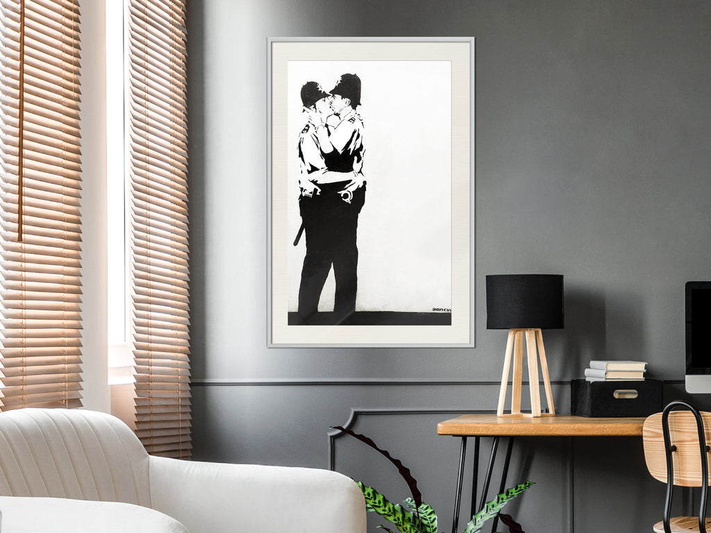 Poster - Banksy: Kissing Coppers II - wit passepartout