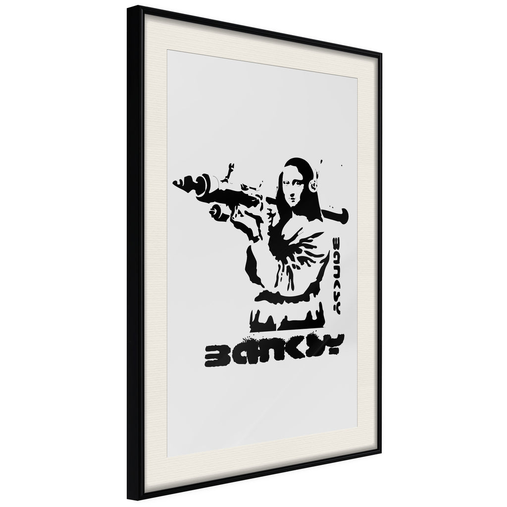 Poster - Banksy: Mona Lisa with Bazooka I - zwart passepartout