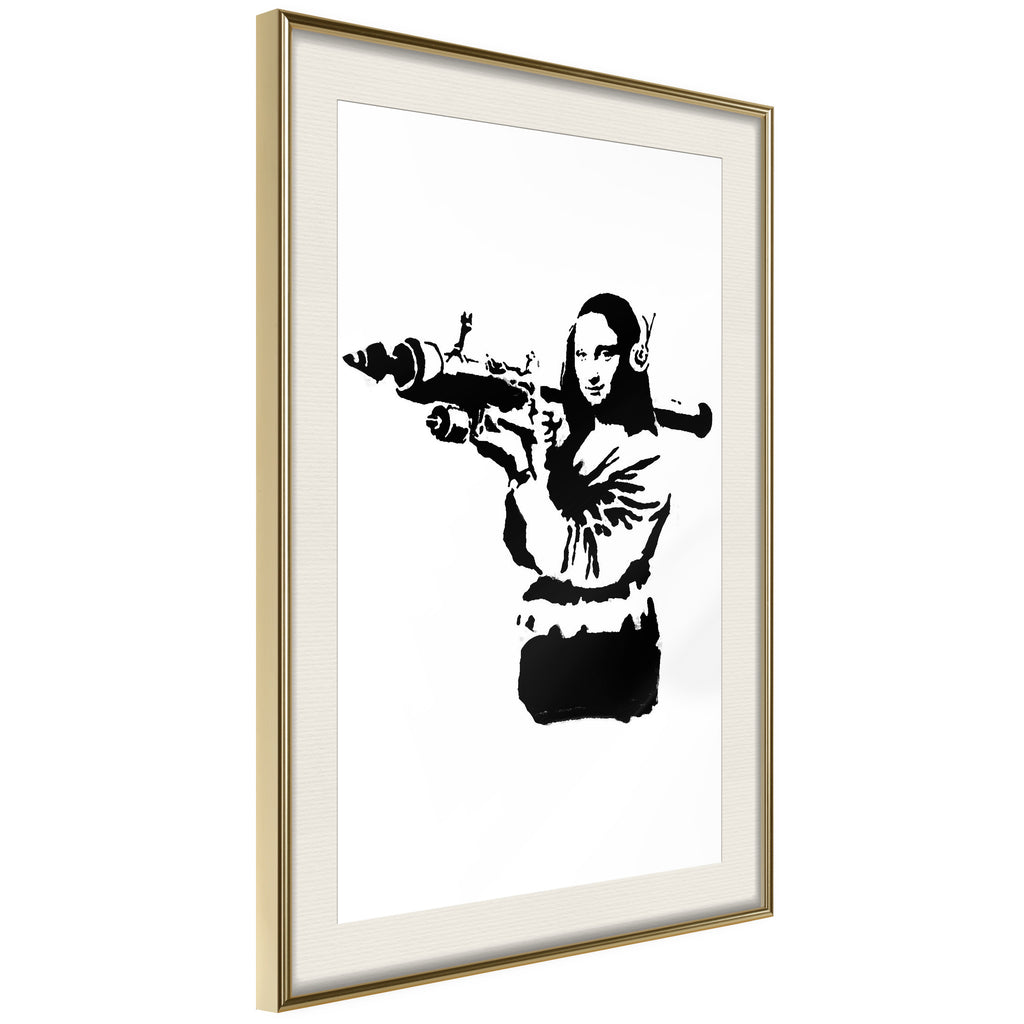 Poster - Banksy: Mona Lisa with Bazooka II - goud passepartout