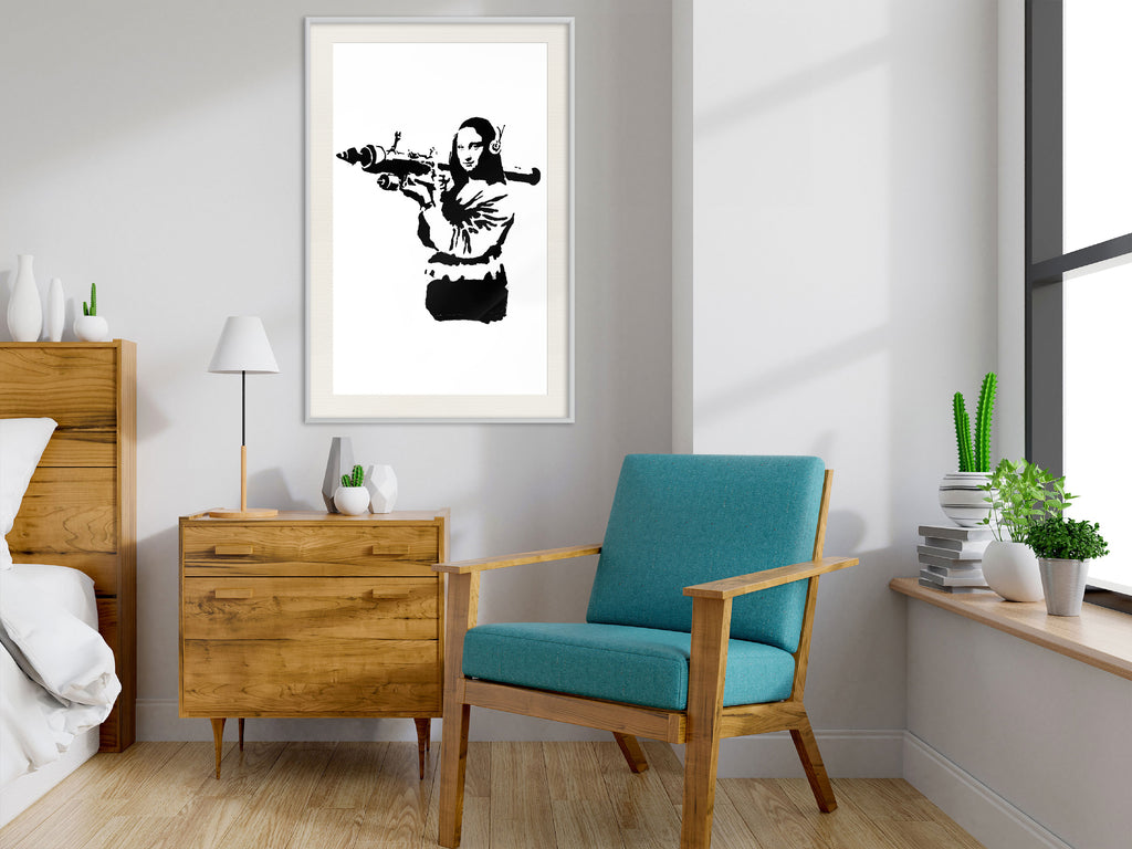 Poster - Banksy: Mona Lisa with Bazooka II - wit passepartout