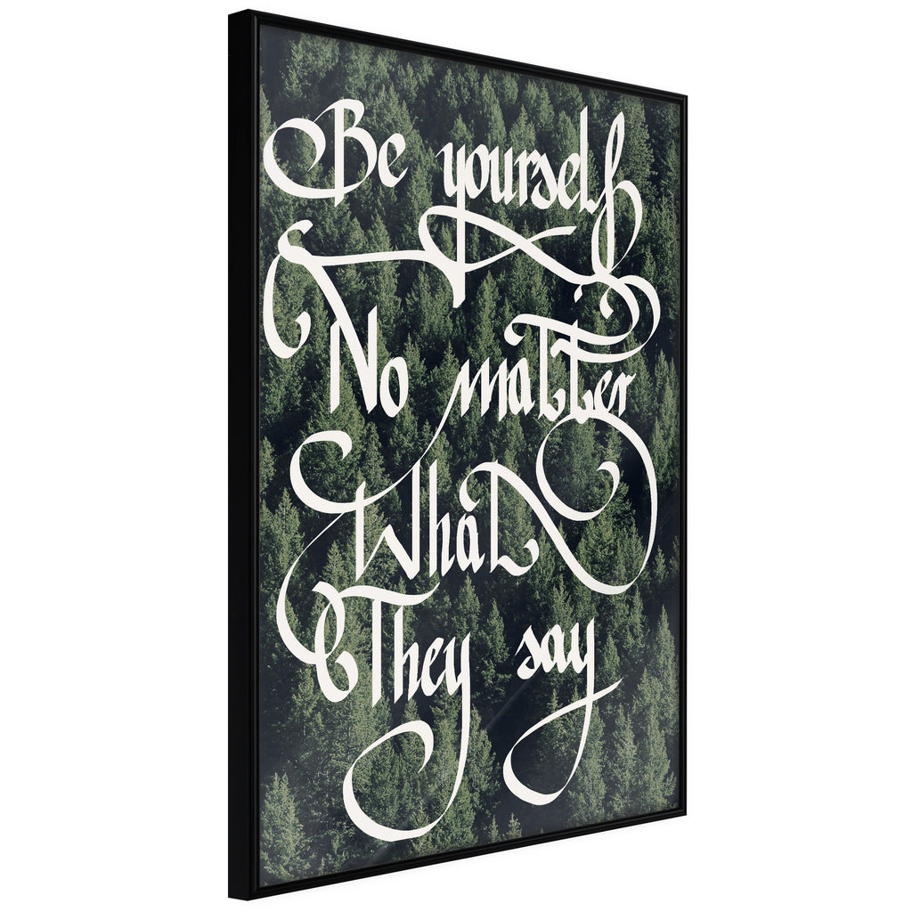 Poster "Poster - Be Yourself" is een product van ons ontwerpteam, dat ervoor zorgt dat onze voorstellen altijd modieus zijn. De poster is beschikbaar in enkele formaten en met verschillende lijsten, zodat je eenvoudig een variant vindt die aan jouw smaak voldoet.