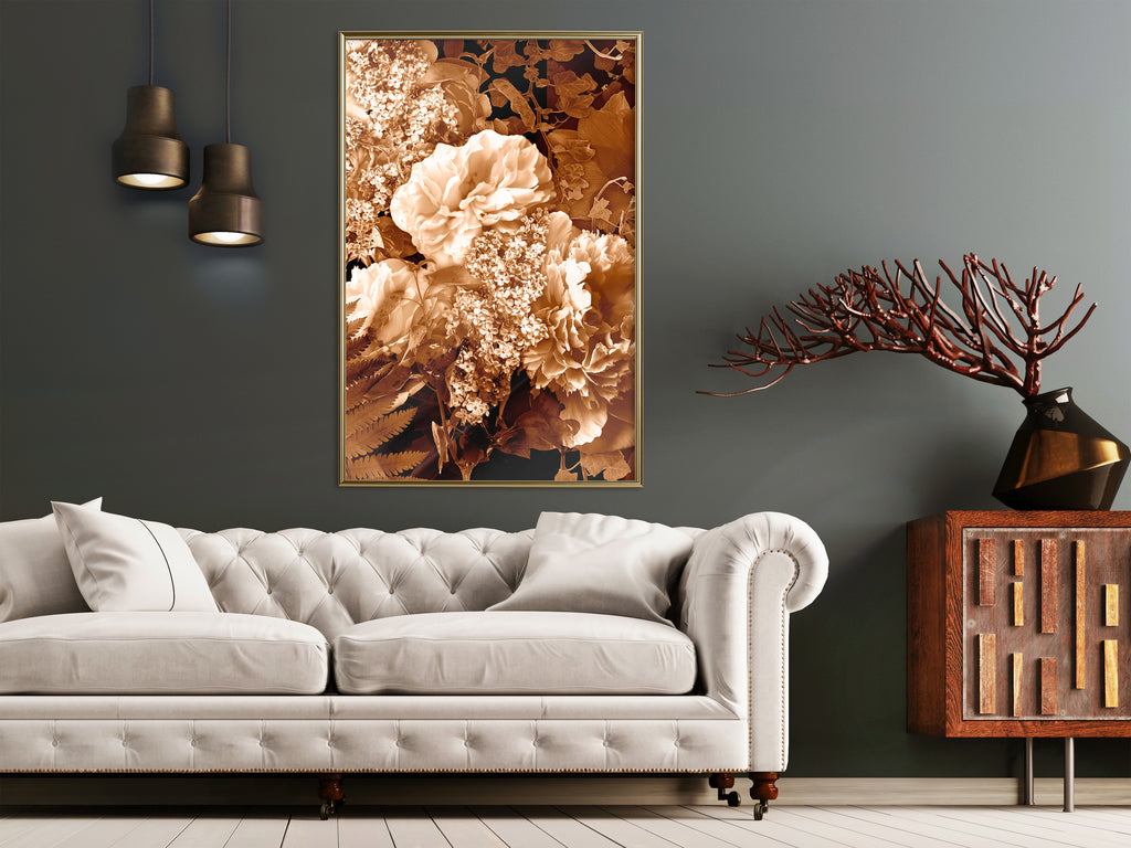 Poster "Poster - Bouquet in Sepia" is een product van ons ontwerpteam, dat ervoor zorgt dat onze voorstellen altijd modieus zijn. De poster is beschikbaar in enkele formaten en met verschillende lijsten, zodat je eenvoudig een variant vindt die aan jouw smaak voldoet.