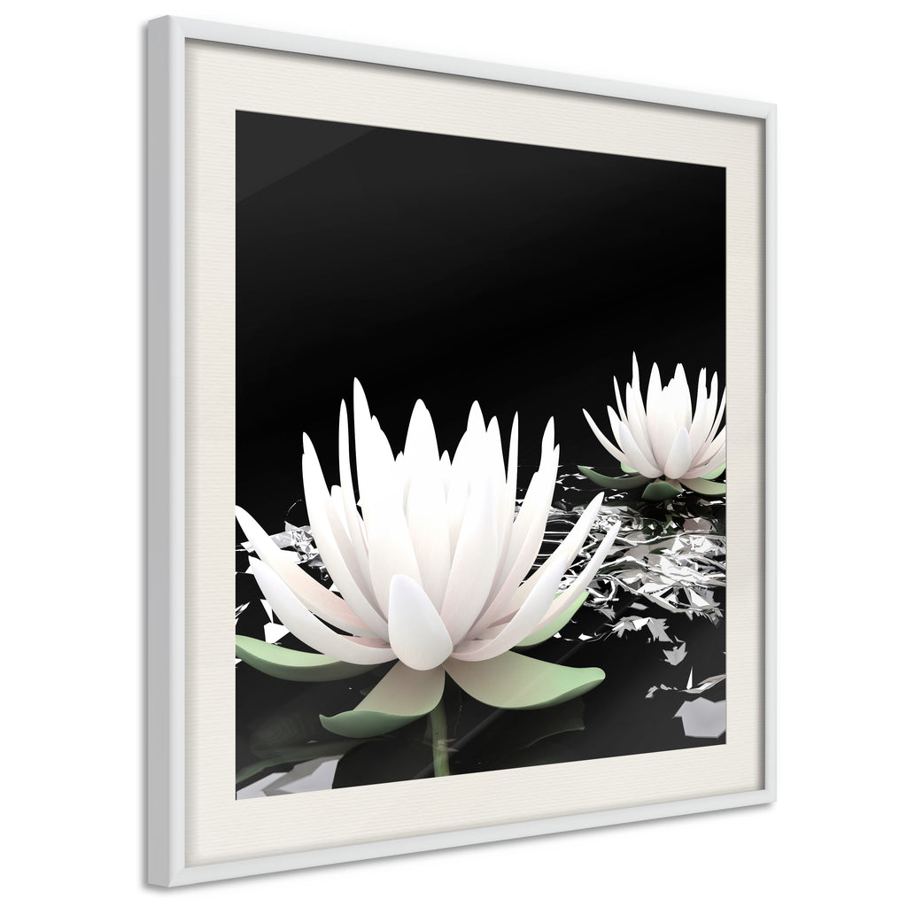 Een ecru passe-partout benadrukt de kleuren van de poster en zorgt voor extra contrast tussen de afbeelding, de lijst en de muur. Bovendien verschaffen ze de omlijsting een driedimensionaal karakter en vormen ze een extra beschermlaag. De poster is beveiligd met acrylglas en is aan de achterzijde van de lijst is een ophanghaakje gemonteerd.