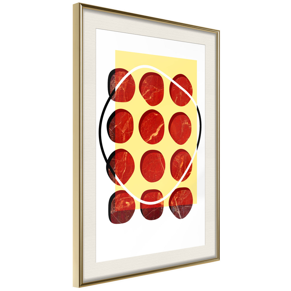 Een ecru passe-partout benadrukt de kleuren van de poster en zorgt voor extra contrast tussen de afbeelding, de lijst en de muur. Bovendien verschaffen ze de omlijsting een driedimensionaal karakter en vormen ze een extra beschermlaag. De poster is beveiligd met acrylglas en is aan de achterzijde van de lijst is een ophanghaakje gemonteerd.