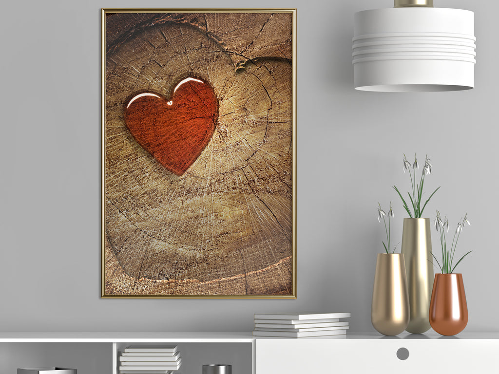 Hoogwaardige materialen Poster "Poster - Carved Heart" is geprint in HD-technologie, op de allerhoogste kwaliteit papier met een gramsgewicht van 170 g/m², zodat de kleuren optimaal tot hun recht komen. De toegepaste printmethode is uv-bestendig zodat de kleuren niet verbleken, zelfs niet wanneer ze langdurig worden blootgesteld aan zonlicht. Zowel de posters zelf als de lijst zijn vervaardigd uit veilig, geurloos materiaal. Daarom zijn ze geschikt om op te hangen in iedere ruimte, ook in de slaapkamer en de kamer van je kind.