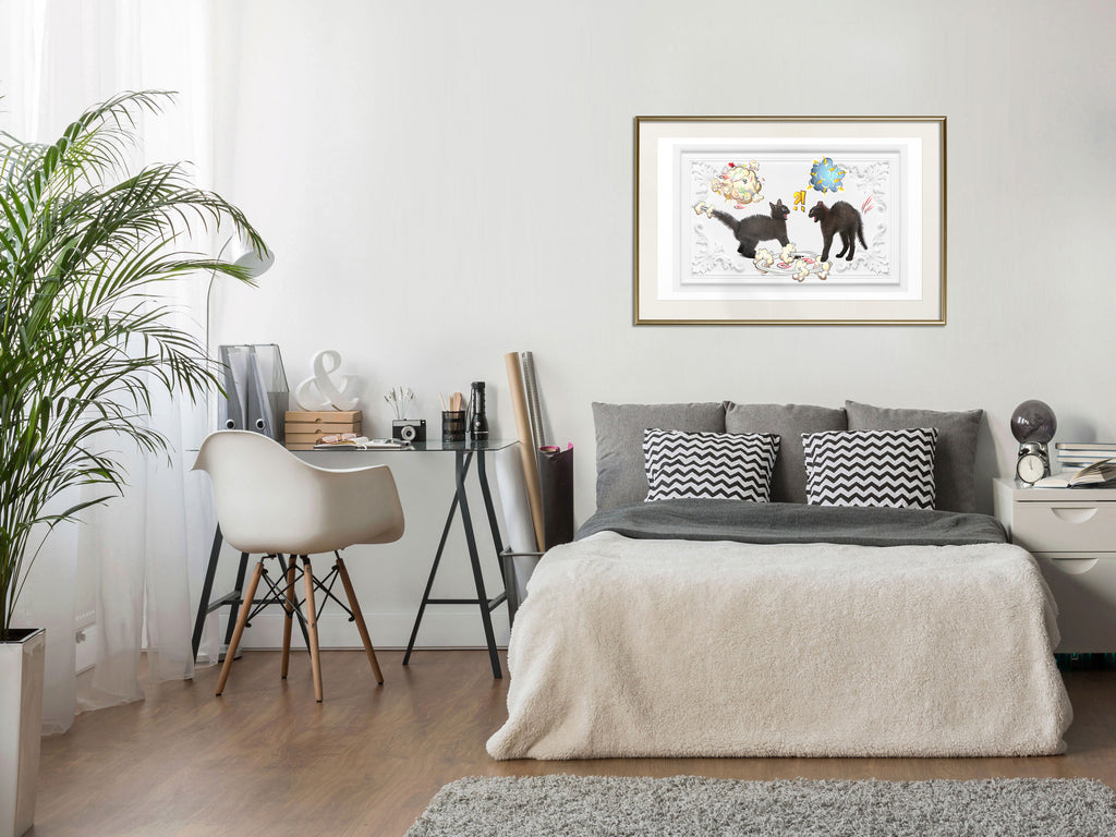 Hoogwaardige materialen Poster "Poster - Cat Fight" is geprint in HD-technologie, op de allerhoogste kwaliteit papier met een gramsgewicht van 170 g/m², zodat de kleuren optimaal tot hun recht komen. De toegepaste printmethode is uv-bestendig zodat de kleuren niet verbleken, zelfs niet wanneer ze langdurig worden blootgesteld aan zonlicht. Zowel de posters zelf als de lijst zijn vervaardigd uit veilig, geurloos materiaal. Daarom zijn ze geschikt om op te hangen in iedere ruimte, ook in de slaapkamer en de kamer van je kind.