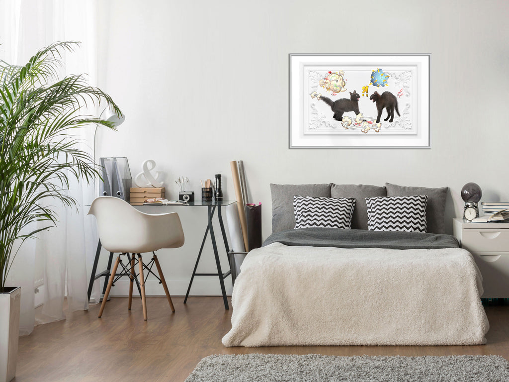 Hoogwaardige materialen Poster "Poster - Cat Fight" is geprint in HD-technologie, op de allerhoogste kwaliteit papier met een gramsgewicht van 170 g/m², zodat de kleuren optimaal tot hun recht komen. De toegepaste printmethode is uv-bestendig zodat de kleuren niet verbleken, zelfs niet wanneer ze langdurig worden blootgesteld aan zonlicht. Zowel de posters zelf als de lijst zijn vervaardigd uit veilig, geurloos materiaal. Daarom zijn ze geschikt om op te hangen in iedere ruimte, ook in de slaapkamer en de kamer van je kind.