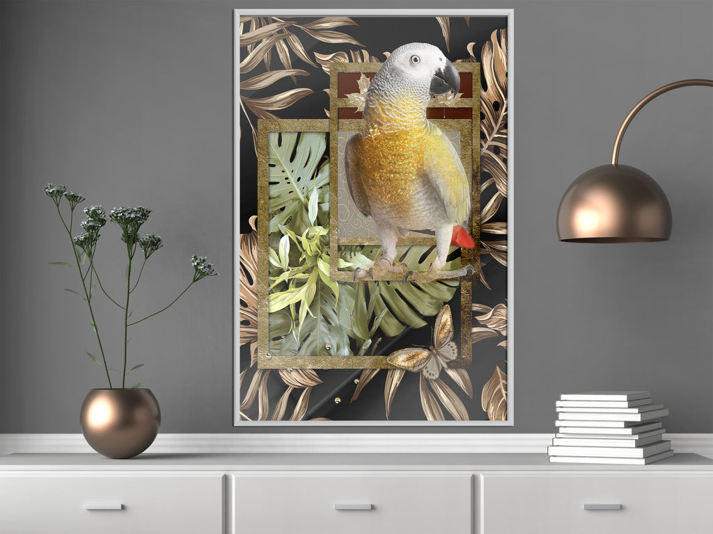 Poster "Poster - Composition with Gold Parrot" is een product van ons ontwerpteam, dat ervoor zorgt dat onze voorstellen altijd modieus zijn. De poster is beschikbaar in enkele formaten en met verschillende lijsten, zodat je eenvoudig een variant vindt die aan jouw smaak voldoet.