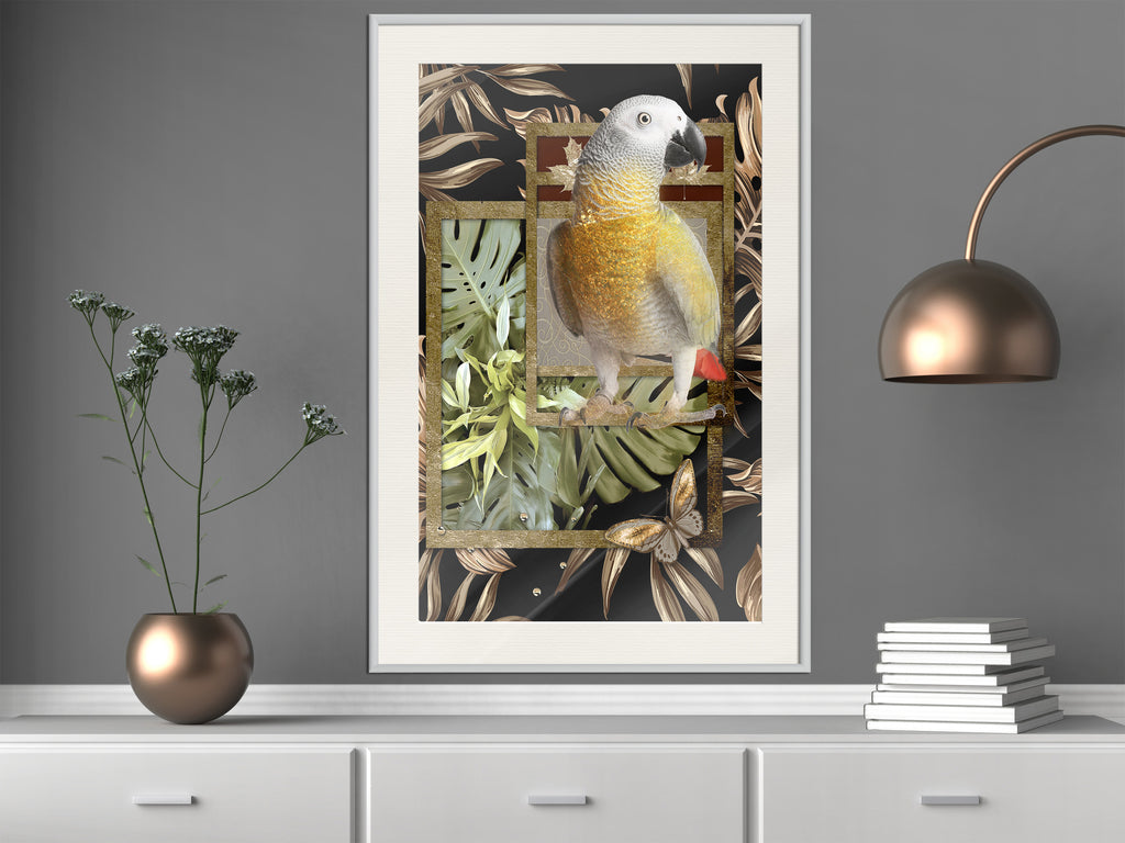 Poster "Poster - Composition with Gold Parrot" is een product van ons ontwerpteam, dat ervoor zorgt dat onze voorstellen altijd modieus zijn. De poster is beschikbaar in enkele formaten en met verschillende lijsten, zodat je eenvoudig een variant vindt die aan jouw smaak voldoet.