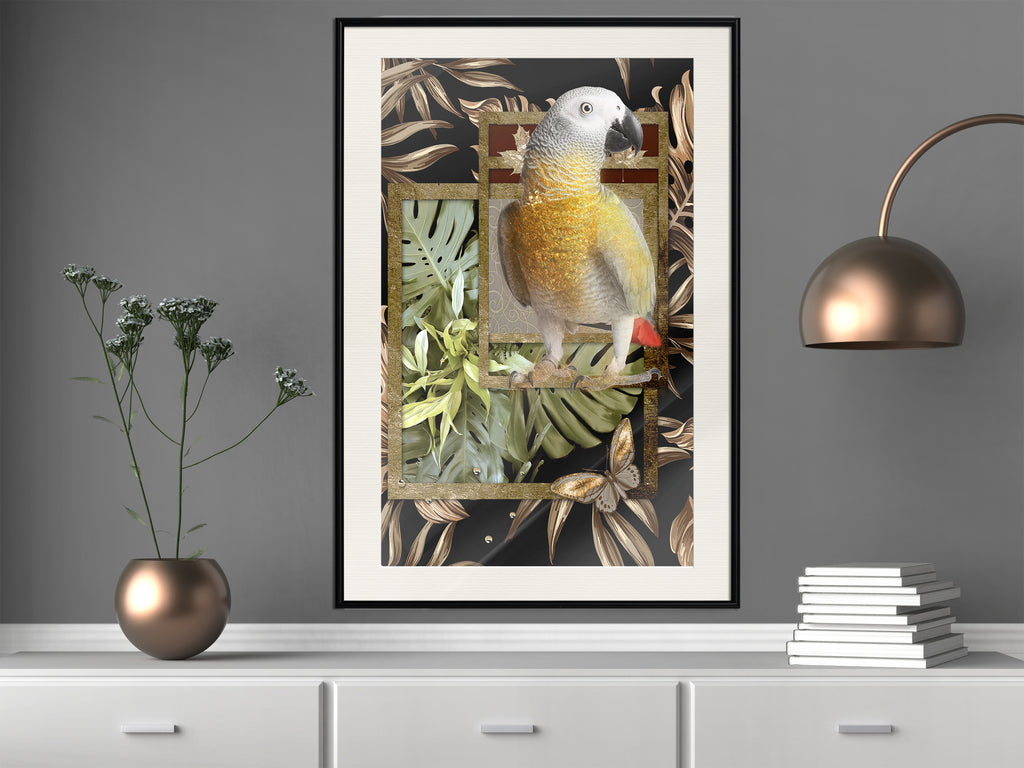 Poster "Poster - Composition with Gold Parrot" is een product van ons ontwerpteam, dat ervoor zorgt dat onze voorstellen altijd modieus zijn. De poster is beschikbaar in enkele formaten en met verschillende lijsten, zodat je eenvoudig een variant vindt die aan jouw smaak voldoet.