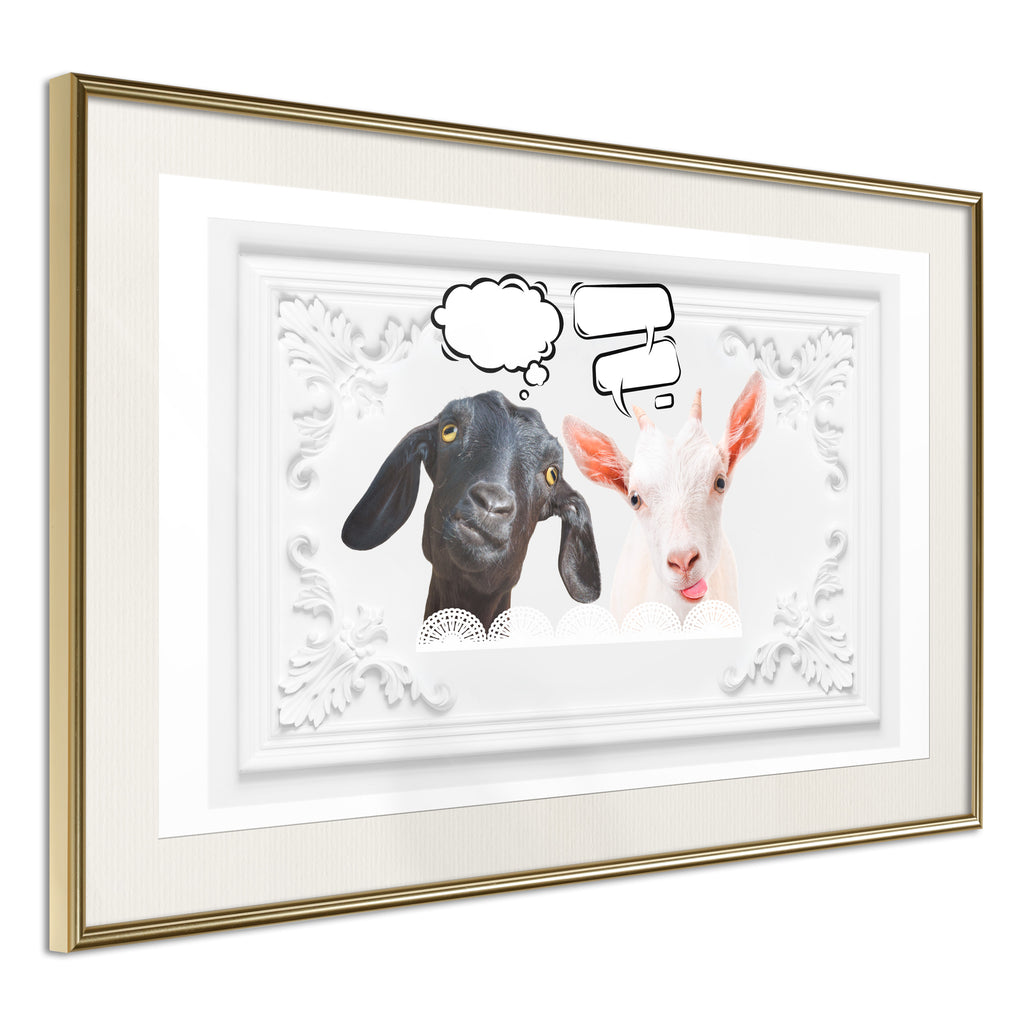 Poster - Conversation of Two Goats - goud passepartout