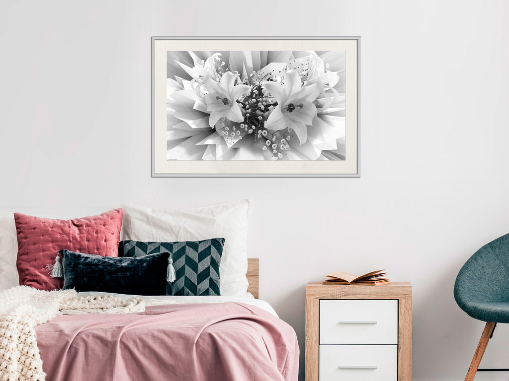 Poster "Poster - Crystal Lillies" is een product van ons ontwerpteam, dat ervoor zorgt dat onze voorstellen altijd modieus zijn. De poster is beschikbaar in enkele formaten en met verschillende lijsten, zodat je eenvoudig een variant vindt die aan jouw smaak voldoet.
