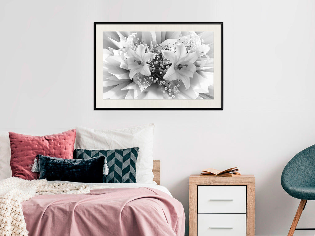 Poster "Poster - Crystal Lillies" is een product van ons ontwerpteam, dat ervoor zorgt dat onze voorstellen altijd modieus zijn. De poster is beschikbaar in enkele formaten en met verschillende lijsten, zodat je eenvoudig een variant vindt die aan jouw smaak voldoet.