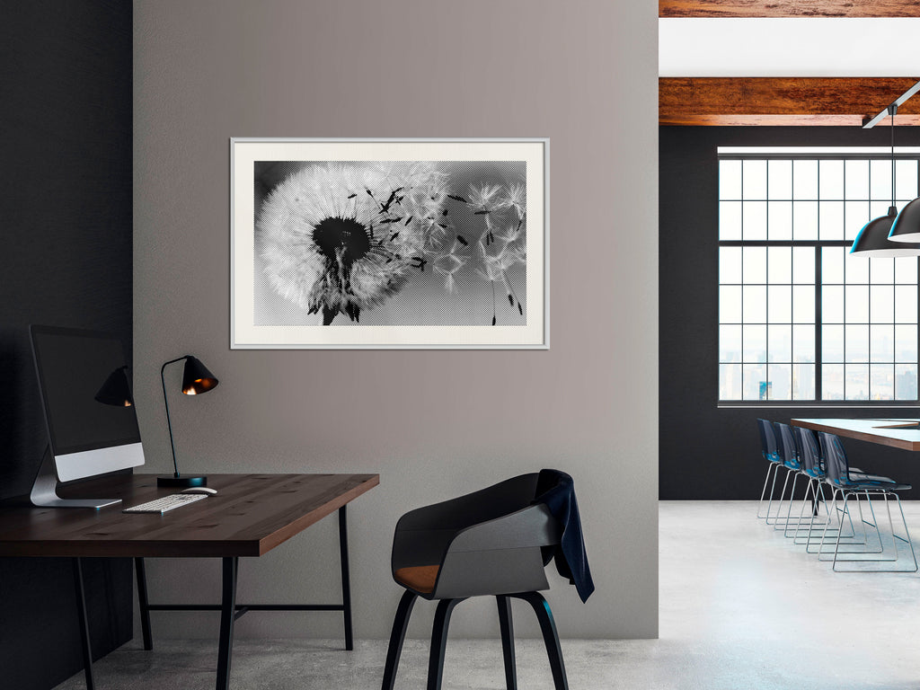 Poster "Poster - Dandelion in the Wind" is een product van ons ontwerpteam, dat ervoor zorgt dat onze voorstellen altijd modieus zijn. De poster is beschikbaar in enkele formaten en met verschillende lijsten, zodat je eenvoudig een variant vindt die aan jouw smaak voldoet.