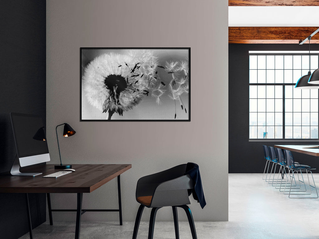 Poster "Poster - Dandelion in the Wind" is een product van ons ontwerpteam, dat ervoor zorgt dat onze voorstellen altijd modieus zijn. De poster is beschikbaar in enkele formaten en met verschillende lijsten, zodat je eenvoudig een variant vindt die aan jouw smaak voldoet.