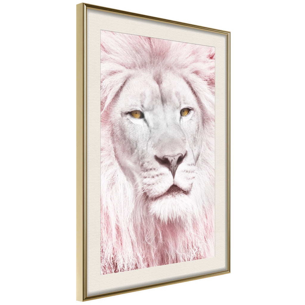 Poster - Dreamy Lion - goud passepartout