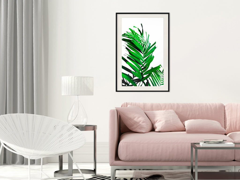 Hoogwaardige materialen Poster "Poster - Emerald Palm" is geprint in HD-technologie, op de allerhoogste kwaliteit papier met een gramsgewicht van 170 g/m², zodat de kleuren optimaal tot hun recht komen. De toegepaste printmethode is uv-bestendig zodat de kleuren niet verbleken, zelfs niet wanneer ze langdurig worden blootgesteld aan zonlicht. Zowel de posters zelf als de lijst zijn vervaardigd uit veilig, geurloos materiaal. Daarom zijn ze geschikt om op te hangen in iedere ruimte, ook in de slaapkamer en de kamer van je kind.