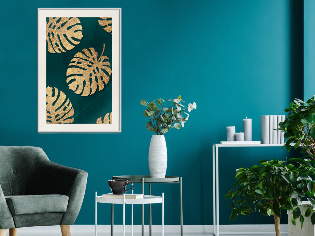 Poster "Poster - Gilded Monstera Leaves" is een product van ons ontwerpteam, dat ervoor zorgt dat onze voorstellen altijd modieus zijn. De poster is beschikbaar in enkele formaten en met verschillende lijsten, zodat je eenvoudig een variant vindt die aan jouw smaak voldoet.