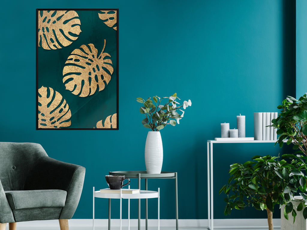 Poster "Poster - Gilded Monstera Leaves" is een product van ons ontwerpteam, dat ervoor zorgt dat onze voorstellen altijd modieus zijn. De poster is beschikbaar in enkele formaten en met verschillende lijsten, zodat je eenvoudig een variant vindt die aan jouw smaak voldoet.