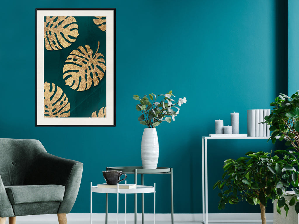Poster "Poster - Gilded Monstera Leaves" is een product van ons ontwerpteam, dat ervoor zorgt dat onze voorstellen altijd modieus zijn. De poster is beschikbaar in enkele formaten en met verschillende lijsten, zodat je eenvoudig een variant vindt die aan jouw smaak voldoet.