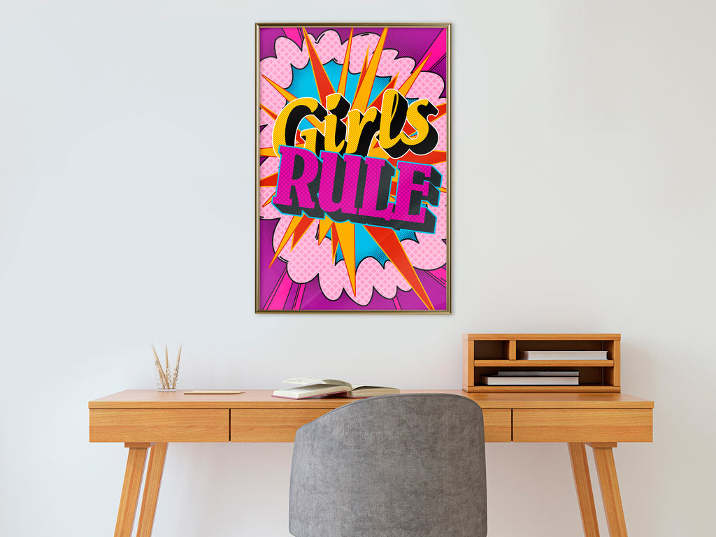 Poster "Poster - Girls Rule (Colour)" is een product van ons ontwerpteam, dat ervoor zorgt dat onze voorstellen altijd modieus zijn. De poster is beschikbaar in enkele formaten en met verschillende lijsten, zodat je eenvoudig een variant vindt die aan jouw smaak voldoet.