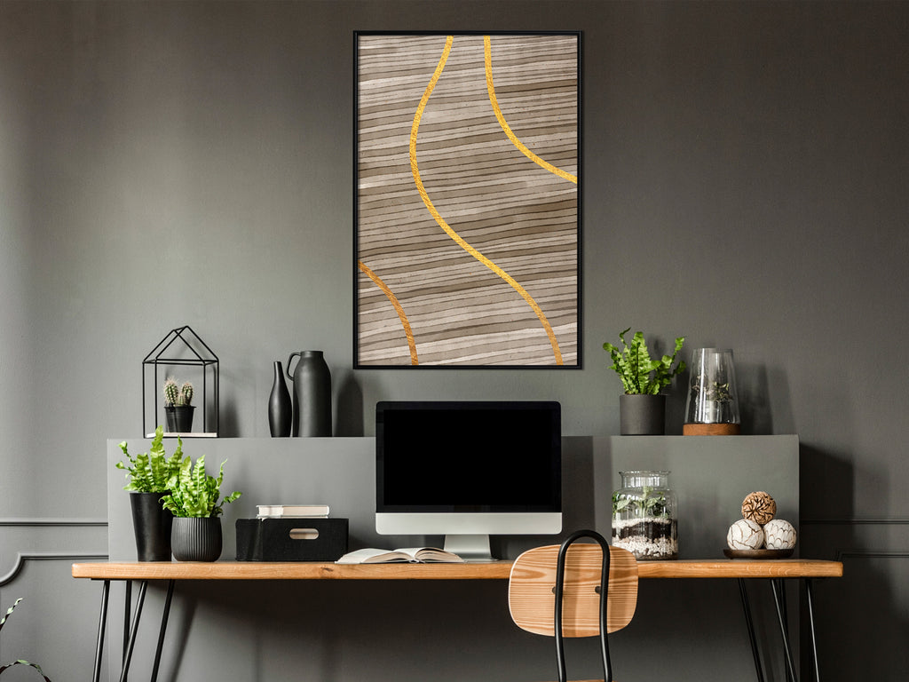Poster "Poster - Golden Stripes" is een product van ons ontwerpteam, dat ervoor zorgt dat onze voorstellen altijd modieus zijn. De poster is beschikbaar in enkele formaten en met verschillende lijsten, zodat je eenvoudig een variant vindt die aan jouw smaak voldoet.