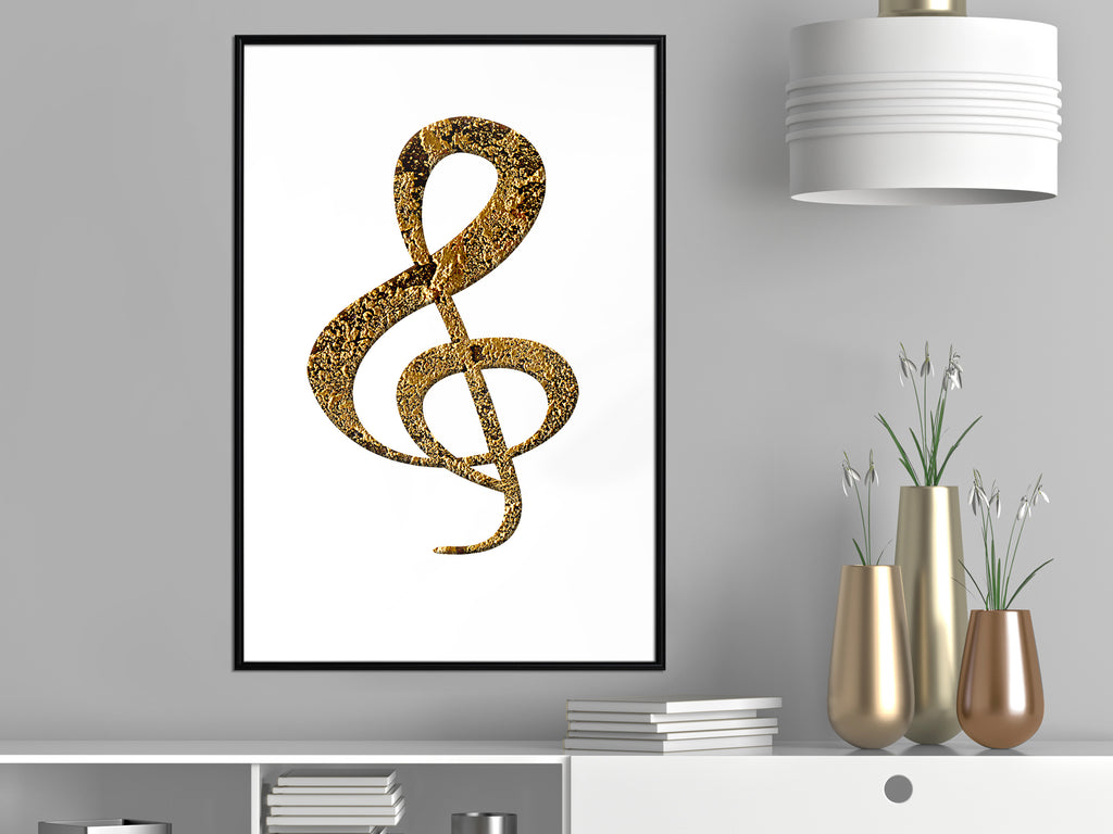 Poster "Poster - Golden Treble Clef" is een product van ons ontwerpteam, dat ervoor zorgt dat onze voorstellen altijd modieus zijn. De poster is beschikbaar in enkele formaten en met verschillende lijsten, zodat je eenvoudig een variant vindt die aan jouw smaak voldoet.
