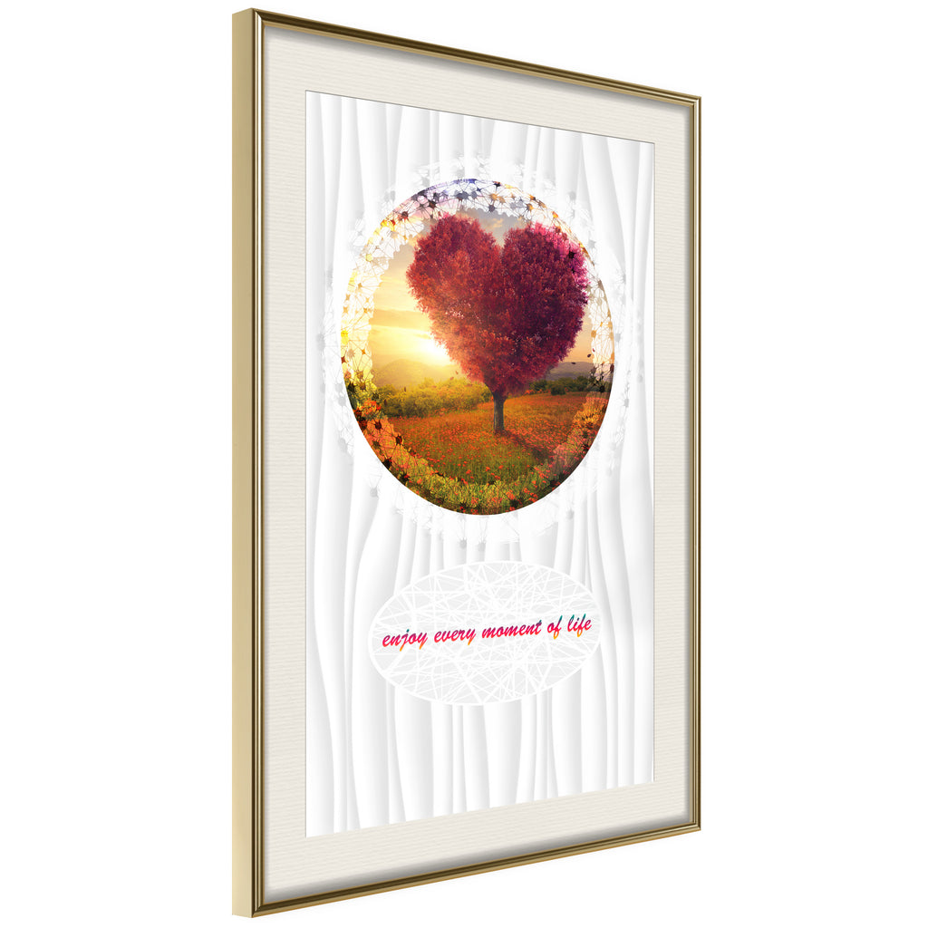 Hoogwaardige materialen Poster "Poster - Heart Tree II" is geprint in HD-technologie, op de allerhoogste kwaliteit papier met een gramsgewicht van 170 g/m², zodat de kleuren optimaal tot hun recht komen. De toegepaste printmethode is uv-bestendig zodat de kleuren niet verbleken, zelfs niet wanneer ze langdurig worden blootgesteld aan zonlicht. Zowel de posters zelf als de lijst zijn vervaardigd uit veilig, geurloos materiaal. Daarom zijn ze geschikt om op te hangen in iedere ruimte, ook in de slaapkamer en de kamer van je kind.