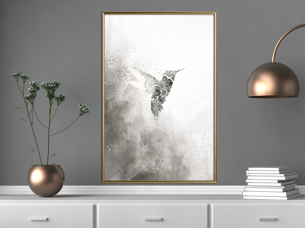 Poster - Hummingbird in Shades of Grey - goud