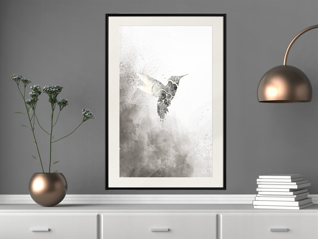 Poster - Hummingbird in Shades of Grey - zwart passepartout