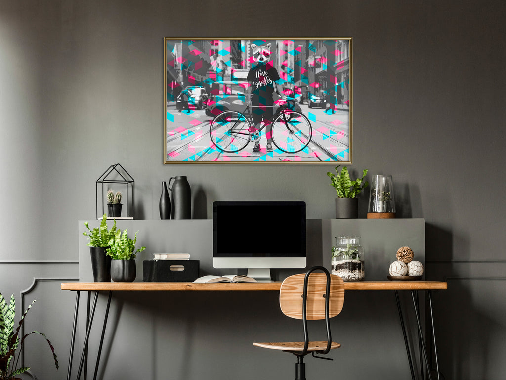 Een ingelijste poster kan worden opgehangen met het inbegrepen haakje, of als we niet in de muur willen of kunnen boren is de poster dermate licht dat hij kan worden opgehangen met tape. Of anders zet je de lijst toch gewoon nonchalant schuin tegen de muur aan op een meubel of op de grond? Gegarandeerd een professioneel effect!