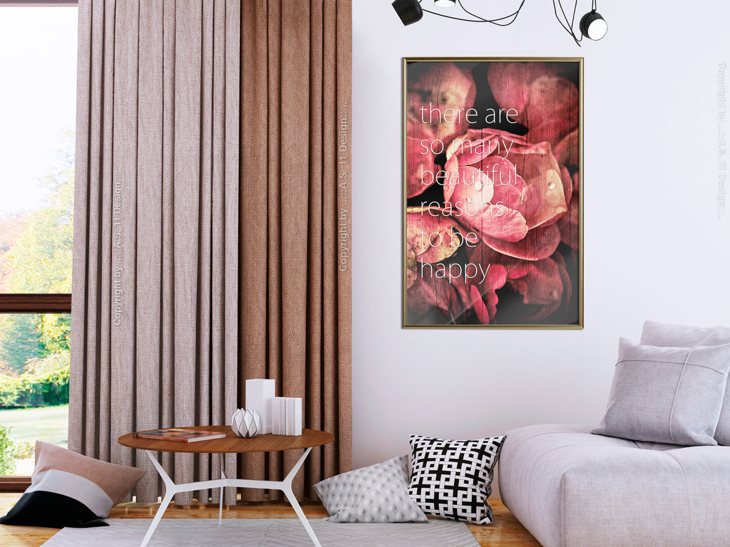 Poster "Poster - Many Reasons to Be Happy" is een product van ons ontwerpteam, dat ervoor zorgt dat onze voorstellen altijd modieus zijn. De poster is beschikbaar in enkele formaten en met verschillende lijsten, zodat je eenvoudig een variant vindt die aan jouw smaak voldoet.