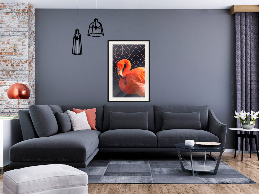 Poster "Poster - Orange Flamingo" is een product van ons ontwerpteam, dat ervoor zorgt dat onze voorstellen altijd modieus zijn. De poster is beschikbaar in enkele formaten en met verschillende lijsten, zodat je eenvoudig een variant vindt die aan jouw smaak voldoet.