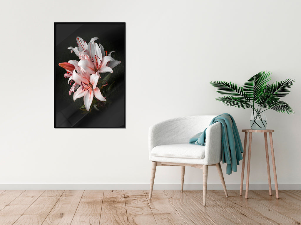 Poster "Poster - Pale Pink Lilies" is een product van ons ontwerpteam, dat ervoor zorgt dat onze voorstellen altijd modieus zijn. De poster is beschikbaar in enkele formaten en met verschillende lijsten, zodat je eenvoudig een variant vindt die aan jouw smaak voldoet.