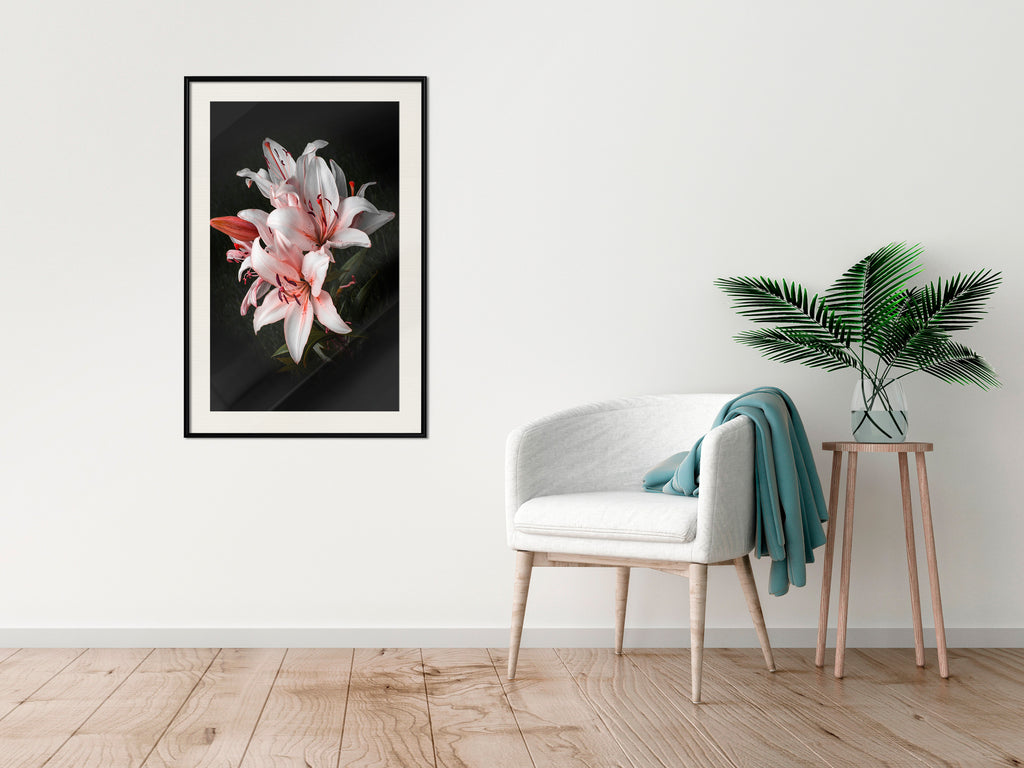 Poster "Poster - Pale Pink Lilies" is een product van ons ontwerpteam, dat ervoor zorgt dat onze voorstellen altijd modieus zijn. De poster is beschikbaar in enkele formaten en met verschillende lijsten, zodat je eenvoudig een variant vindt die aan jouw smaak voldoet.