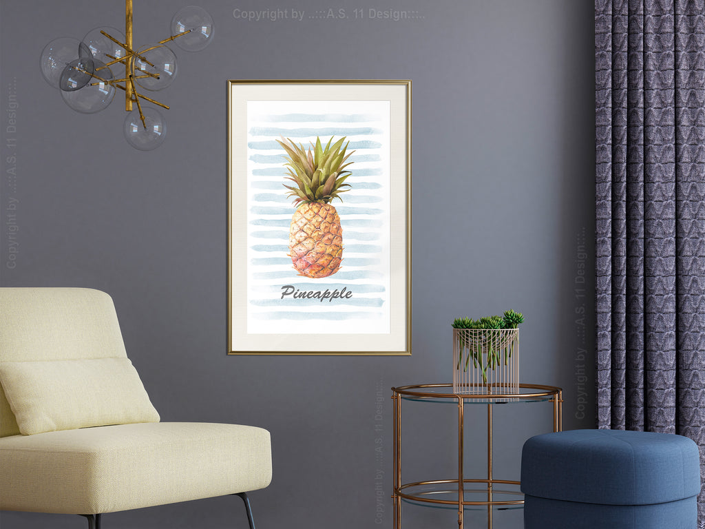 Poster "Poster - Pineapple on Striped Background" is een product van ons ontwerpteam, dat ervoor zorgt dat onze voorstellen altijd modieus zijn. De poster is beschikbaar in enkele formaten en met verschillende lijsten, zodat je eenvoudig een variant vindt die aan jouw smaak voldoet.