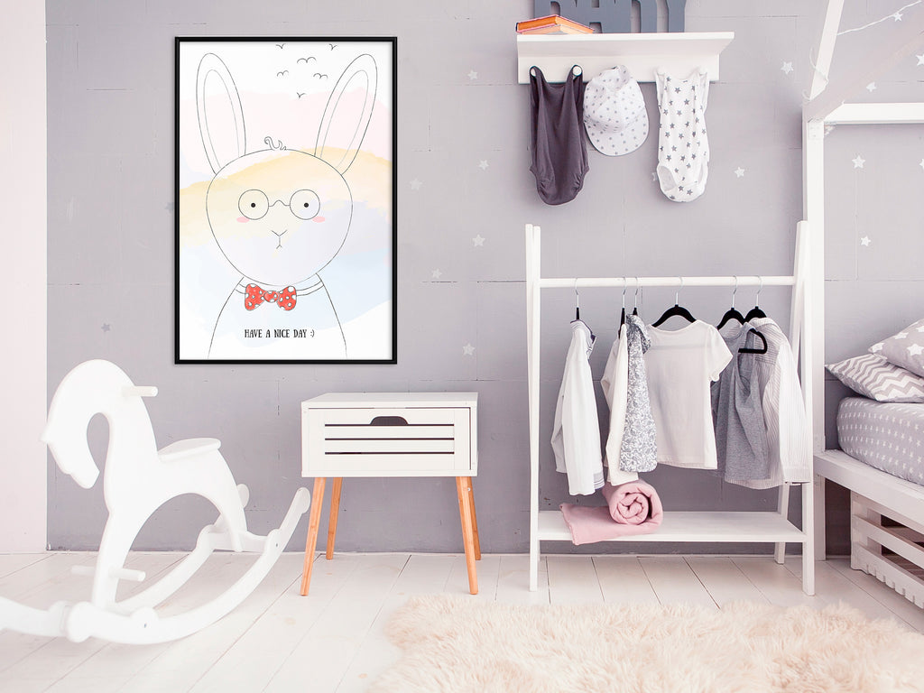 Poster "Poster - Polite Bunny" is een product van ons ontwerpteam, dat ervoor zorgt dat onze voorstellen altijd modieus zijn. De poster is beschikbaar in enkele formaten en met verschillende lijsten, zodat je eenvoudig een variant vindt die aan jouw smaak voldoet.