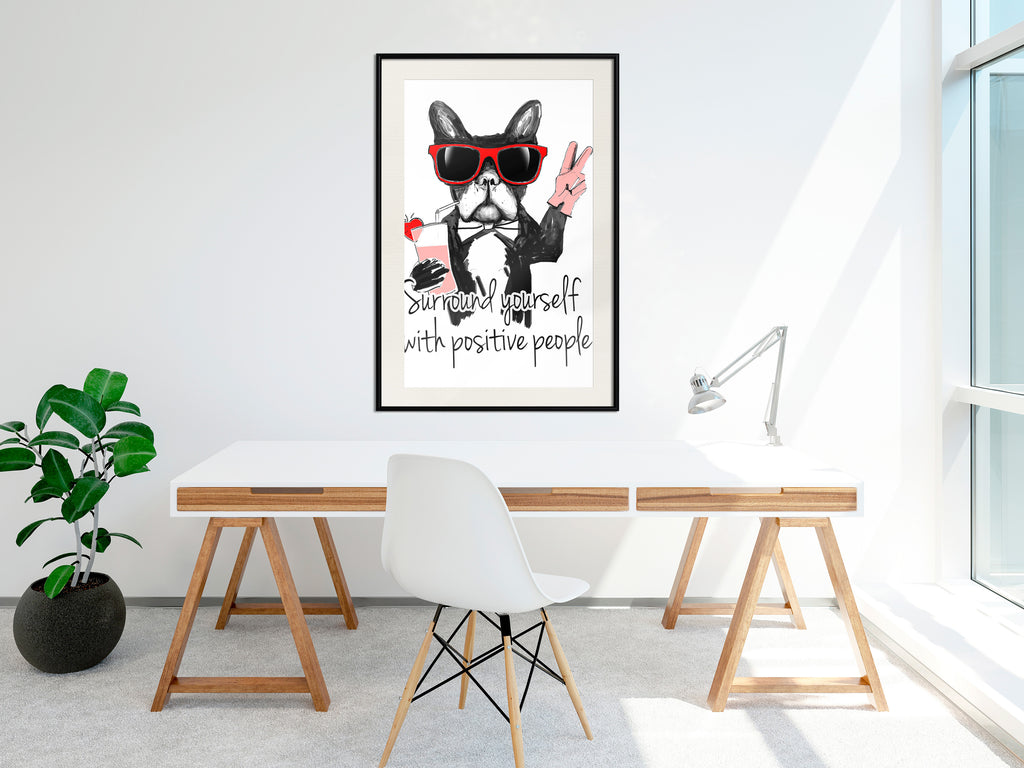 Poster "Poster - Positive Bulldog" is een product van ons ontwerpteam, dat ervoor zorgt dat onze voorstellen altijd modieus zijn. De poster is beschikbaar in enkele formaten en met verschillende lijsten, zodat je eenvoudig een variant vindt die aan jouw smaak voldoet.