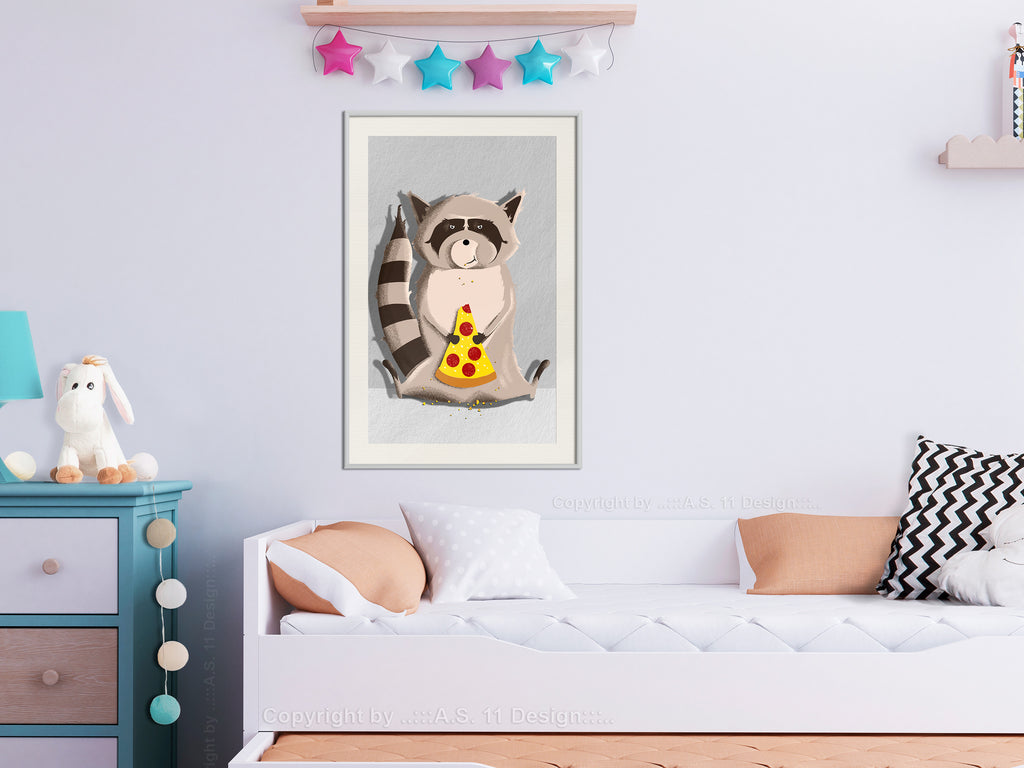 Poster "Poster - Racoon Eating Pizza" is een product van ons ontwerpteam, dat ervoor zorgt dat onze voorstellen altijd modieus zijn. De poster is beschikbaar in enkele formaten en met verschillende lijsten, zodat je eenvoudig een variant vindt die aan jouw smaak voldoet.