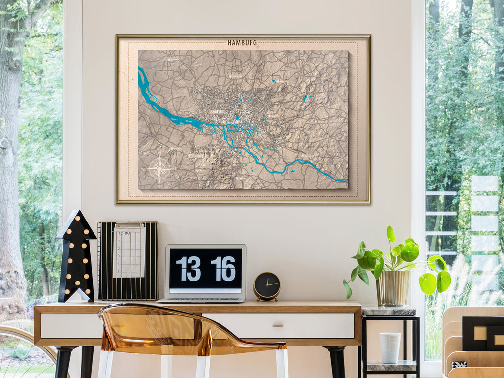 Poster "Poster - Raised Relief Map: Hamburg" is een product van ons ontwerpteam, dat ervoor zorgt dat onze voorstellen altijd modieus zijn. De poster is beschikbaar in enkele formaten en met verschillende lijsten, zodat je eenvoudig een variant vindt die aan jouw smaak voldoet.