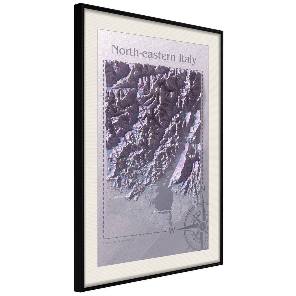 Poster - Raised Relief Map: North-Eastern Italy - zwart passepartout