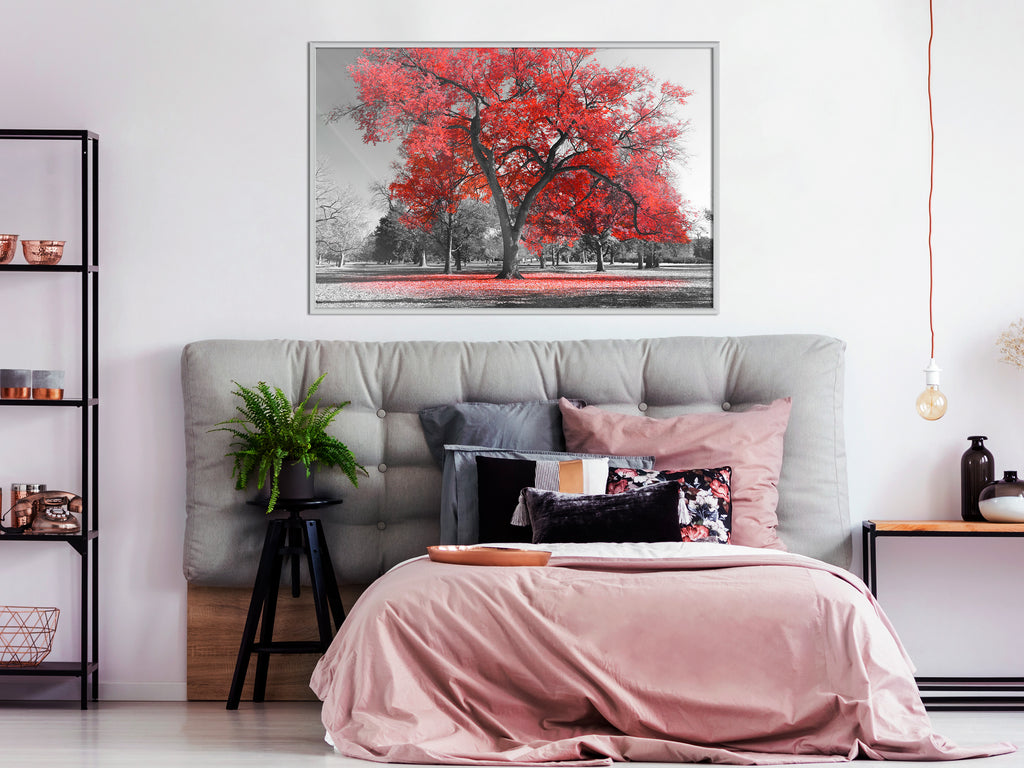 Hoogwaardige materialen Poster "Poster - Red Tree" is geprint in HD-technologie, op de allerhoogste kwaliteit papier met een gramsgewicht van 170 g/m², zodat de kleuren optimaal tot hun recht komen. De toegepaste printmethode is uv-bestendig zodat de kleuren niet verbleken, zelfs niet wanneer ze langdurig worden blootgesteld aan zonlicht. Zowel de posters zelf als de lijst zijn vervaardigd uit veilig, geurloos materiaal. Daarom zijn ze geschikt om op te hangen in iedere ruimte, ook in de slaapkamer en de kamer van je kind.