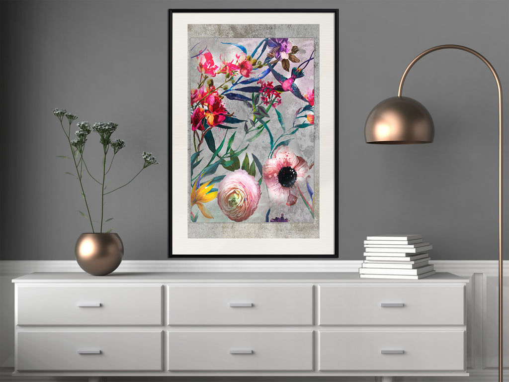 Poster - Scattered Flowers - zwart passepartout
