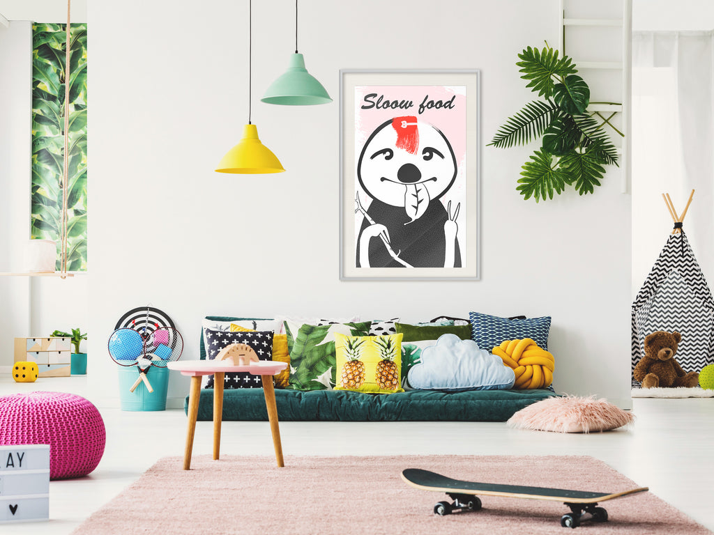 Poster "Poster - Sloth's Favourite Food " is een product van ons ontwerpteam, dat ervoor zorgt dat onze voorstellen altijd modieus zijn. De poster is beschikbaar in enkele formaten en met verschillende lijsten, zodat je eenvoudig een variant vindt die aan jouw smaak voldoet.